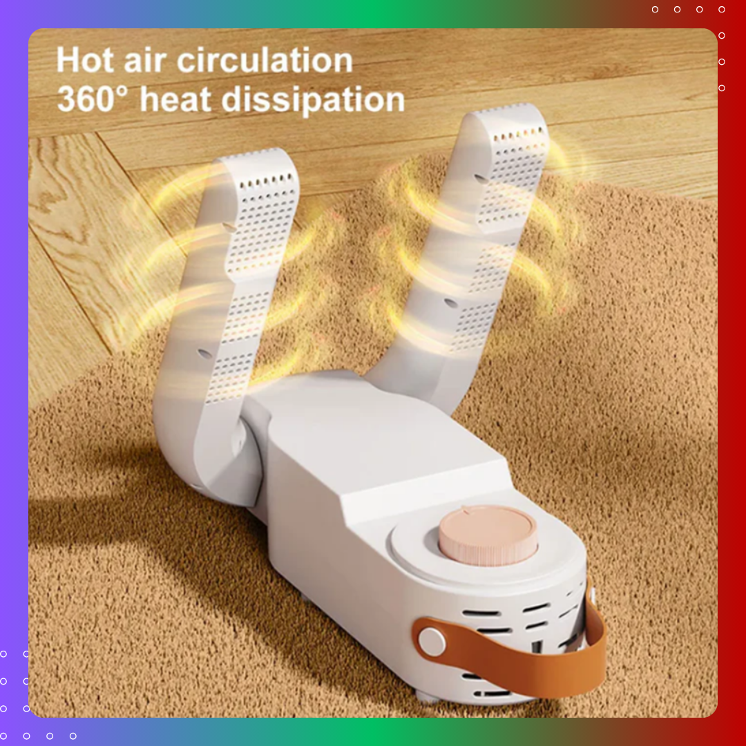 - 🔥 Secado tridimensional 360°: Distribuye el calor de manera uniforme para secar los zapatos en todas las direcciones, eliminando la humedad incluso en zonas difíciles de alcanzar.